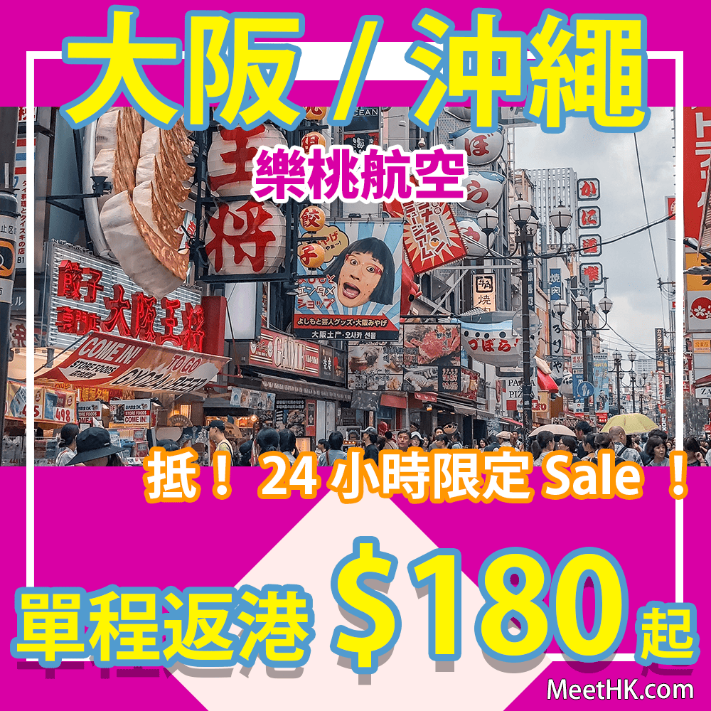 24小時限定Flash Sale!回程平飛!沖繩連稅三百!大阪連稅四百!沖繩/大阪飛香港單程只需$180起 – 樂桃航空 (優惠至12月12日9pm)