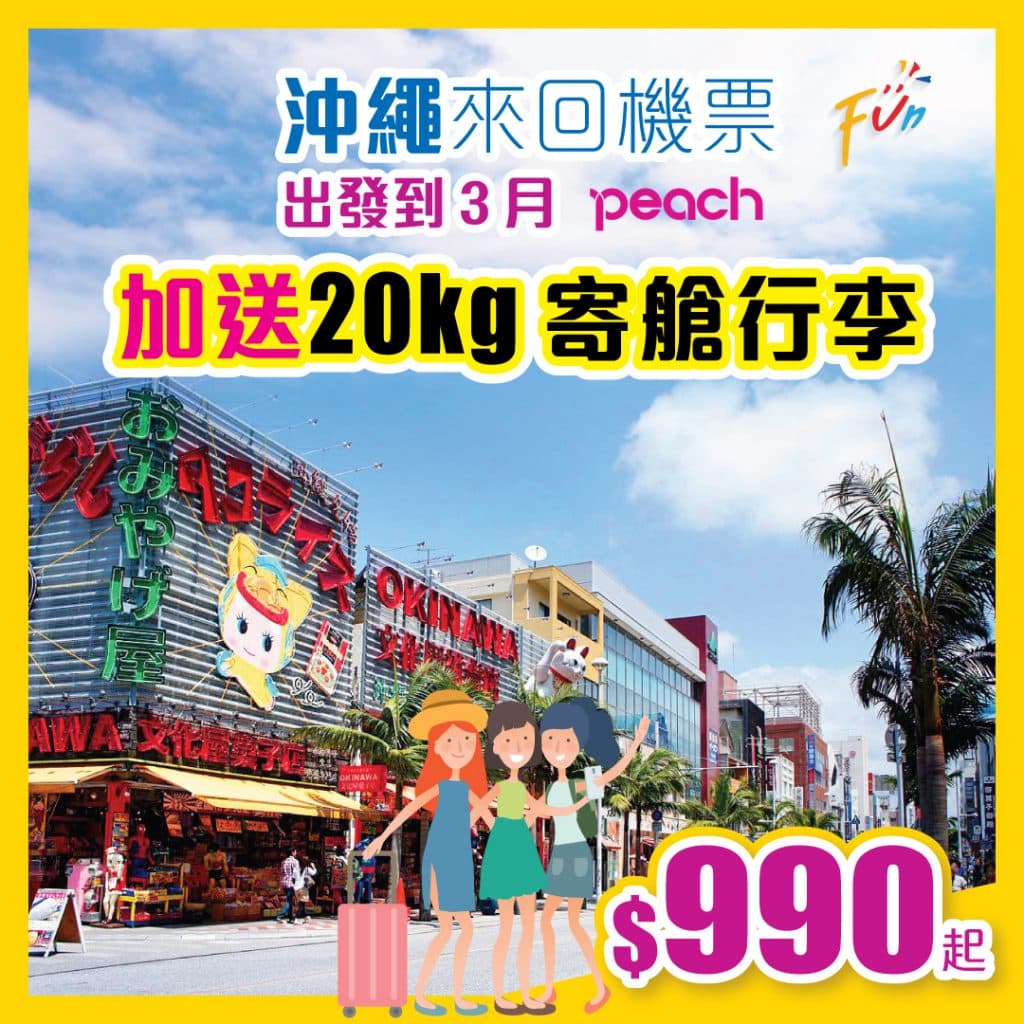 樂桃航空來回沖繩$990起,連埋稅都只係$1,470起!送埋20kg行李。旅行日期去到明年3月!