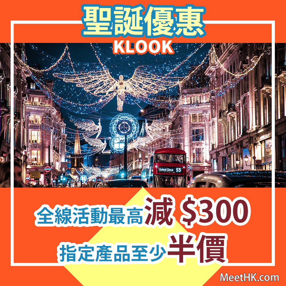嘩!KLOOK聖誕優惠!指定產品至少享半價!每日準時即搶!仲有全線活動優惠!滿$1,000減100!滿$2,500減$300!- KLOOK