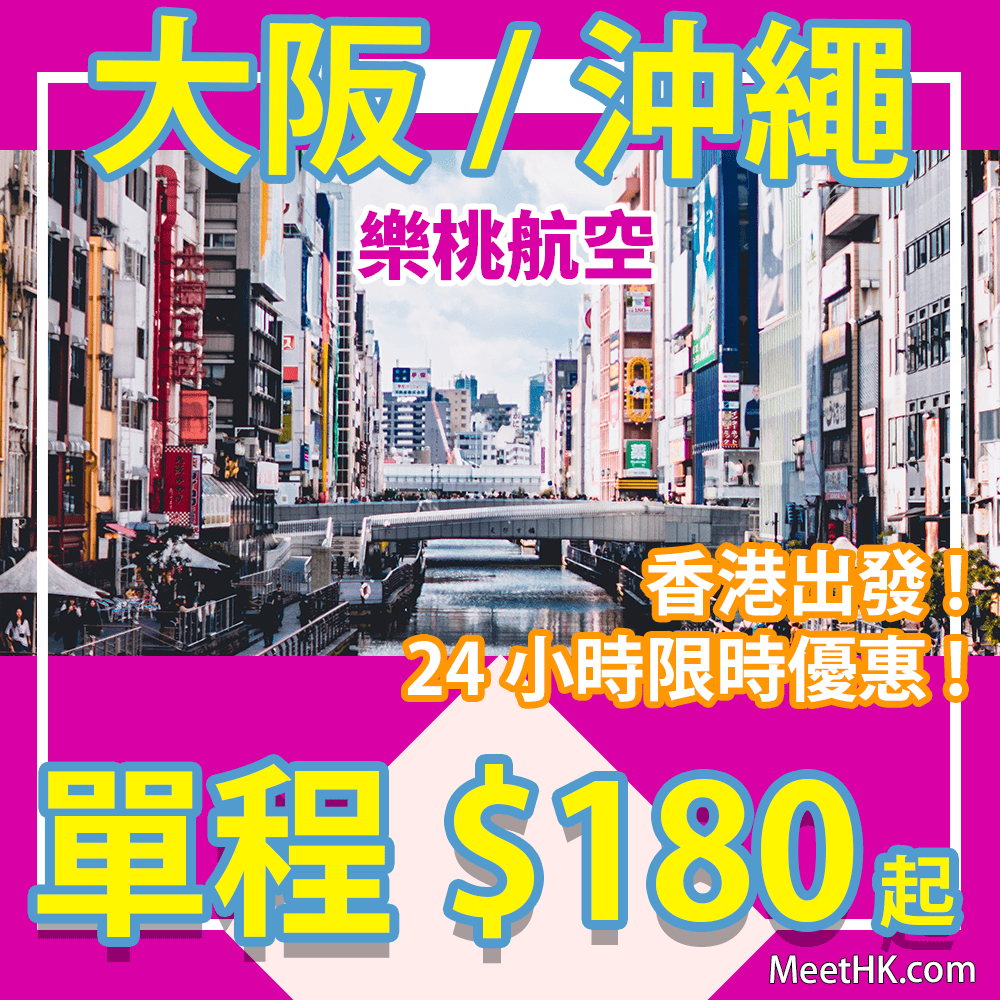 限時24小時優惠!沖繩來回連稅七百!大阪來回連稅八百!抵!香港飛沖繩單程只需$180起,大阪$200起 – 樂桃航空 (優惠至12月13日)