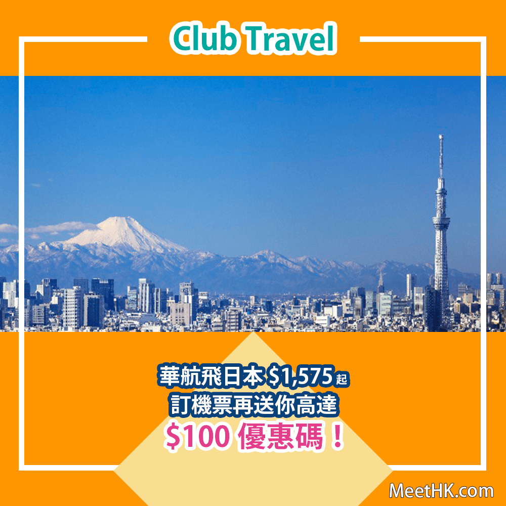 Club Travel 聖誕訂機票送大禮!華航飛日本$1,575起!再送高達$100優惠碼!名額200位!國泰飛新加坡$1,035起、首爾$1,319起、倫敦$2,749起、新航飛新加坡$1,142起、華航飛日本$1,575起、JAL飛東京$2,601起 (優惠至12月31日)