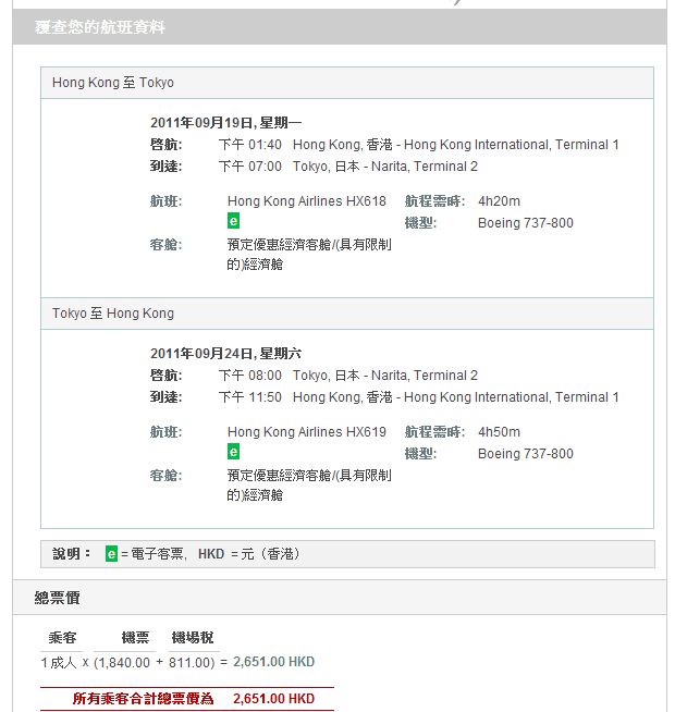 5. 機票於有效期內可以改期,唯每次需繳付港幣500元手續費;