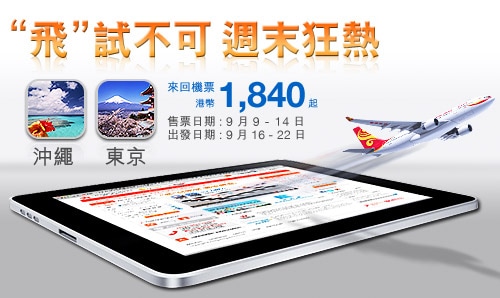「“飛”試不可- 週末狂熱」又黎喇!今次精選了最受歡迎的日本城市 — 沖繩及東京,一連6日讓您以優惠價訂購!下星期五即可出發,讓您於中秋之後繼續享受悠長假期。來回機票數量有限,售完即止,火速行動!