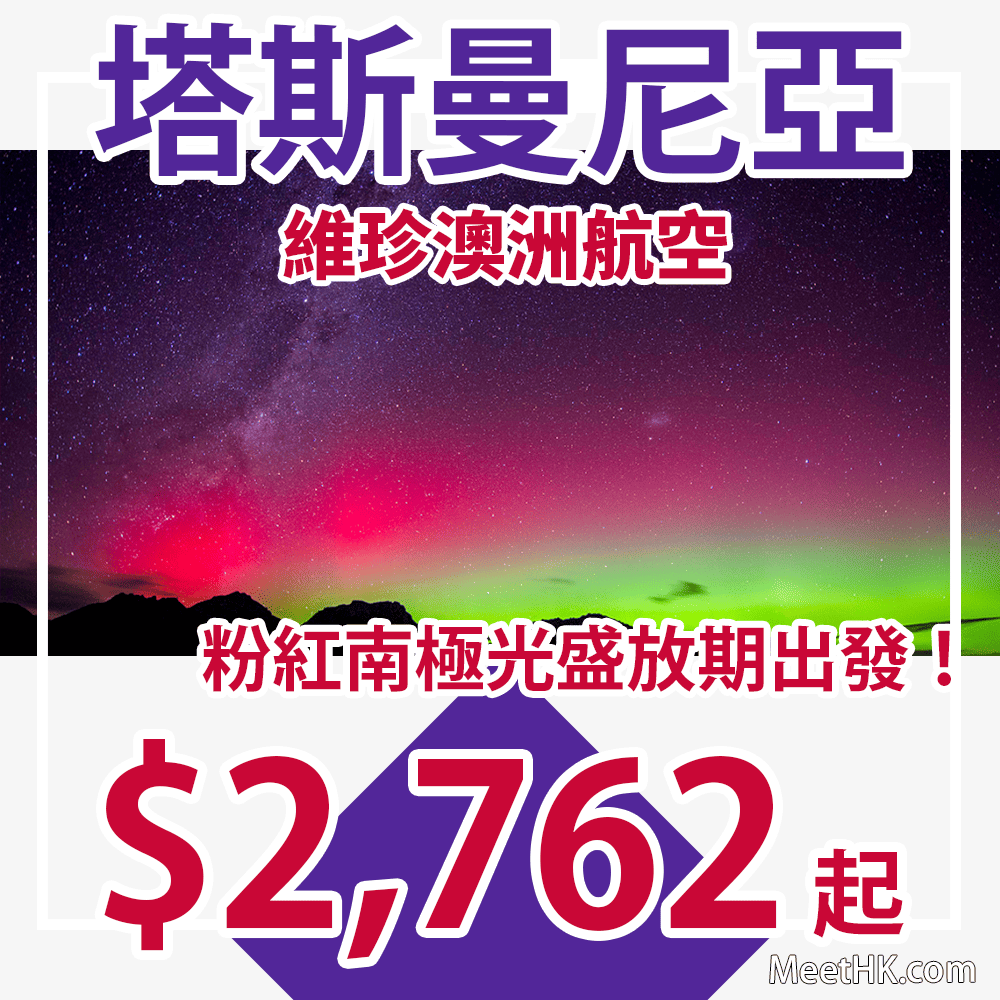 平飛塔斯曼尼亞!連稅3千9!粉紅南極光盛放期出發!香港往返塔斯曼尼亞只需$2,762起 – 維珍澳洲航空 (優惠至12月18日)
