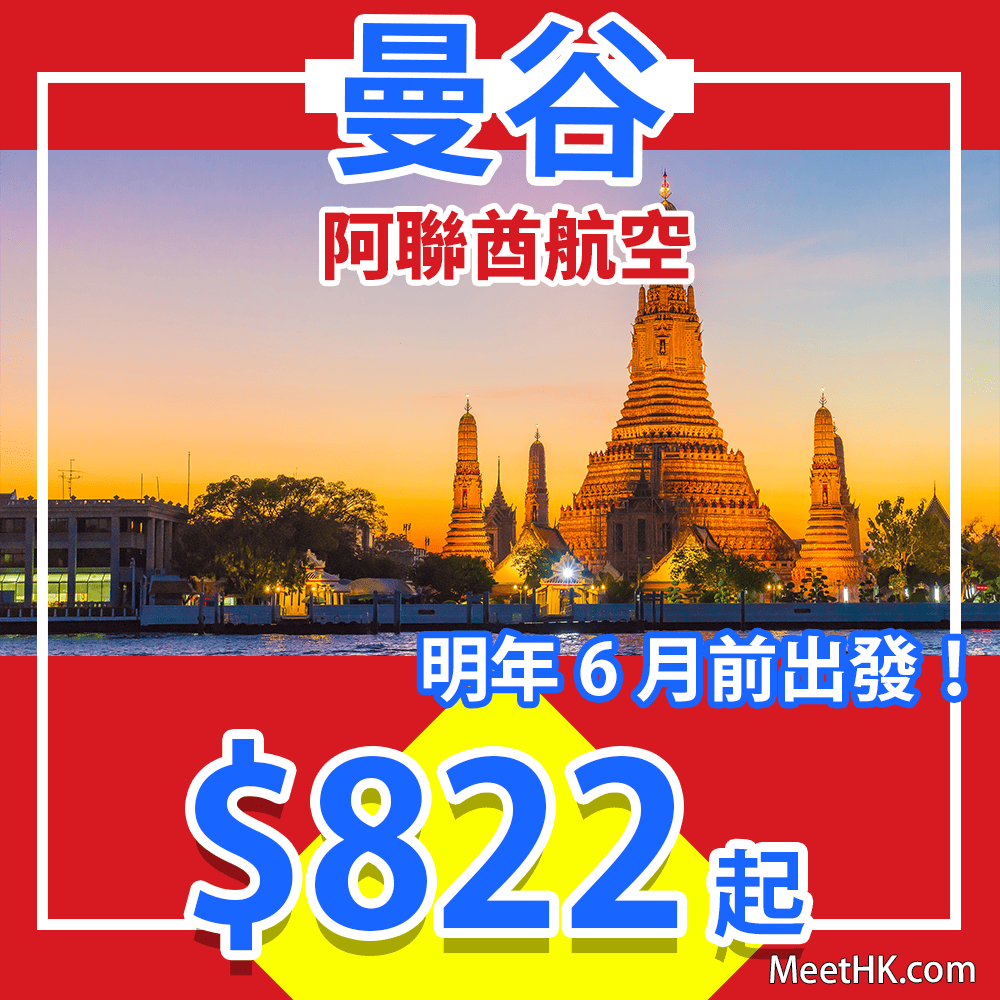 香港往返曼谷只需$822起,連稅$1,521起