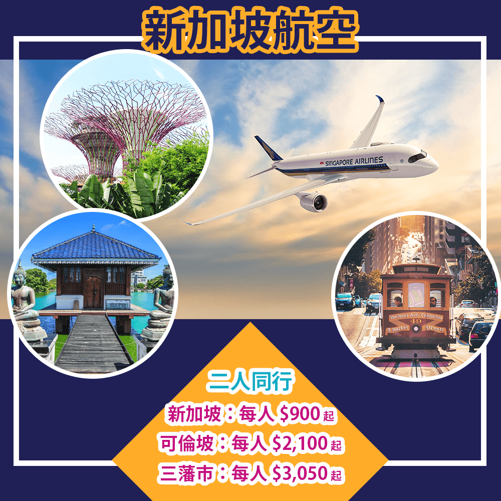 嘩嘩嘩!新航2020年第一擊優惠!超過20個航點!新加坡$900起、可倫坡$2,100起、三藩市$3,050起 – 新加坡航空 (優惠至1月20日)