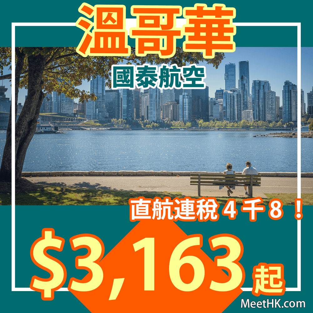 香港直航往返溫哥華只需$3,163起,連稅$4,834起