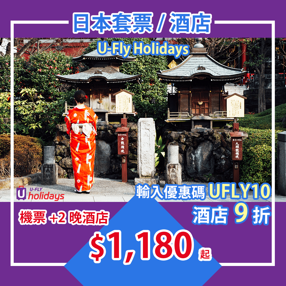 新年Mega Sale雙重優惠!酒店額外9折!日本機票+2晚酒店套票每人連稅只需$1,180起 – U-FLY Holidays (優惠至1月19日)