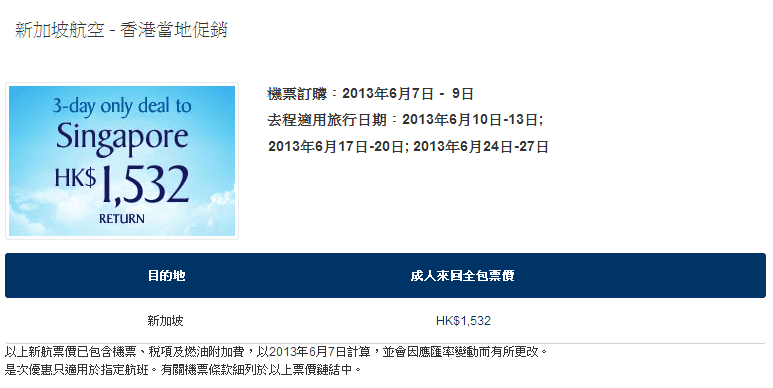 限時三天!6月份出發!可坐A380!香港往返新加坡只需$800 – 新加坡航空 (優惠至6月9日)