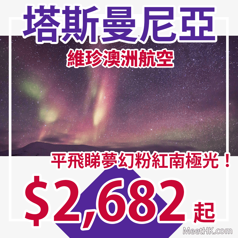 平飛塔斯曼尼亞!連稅3千8!粉紅南極光盛放期出發!香港往返塔斯曼尼亞只需$2,682起 – 維珍澳洲航空 (優惠至1月29日)