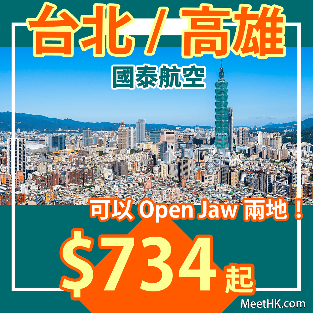 國泰台灣優惠!連稅千四!可以Open Jaw!7月8日前出發!香港往返台北、高雄只需$734起 – 國泰航空 (優惠至3月15日)