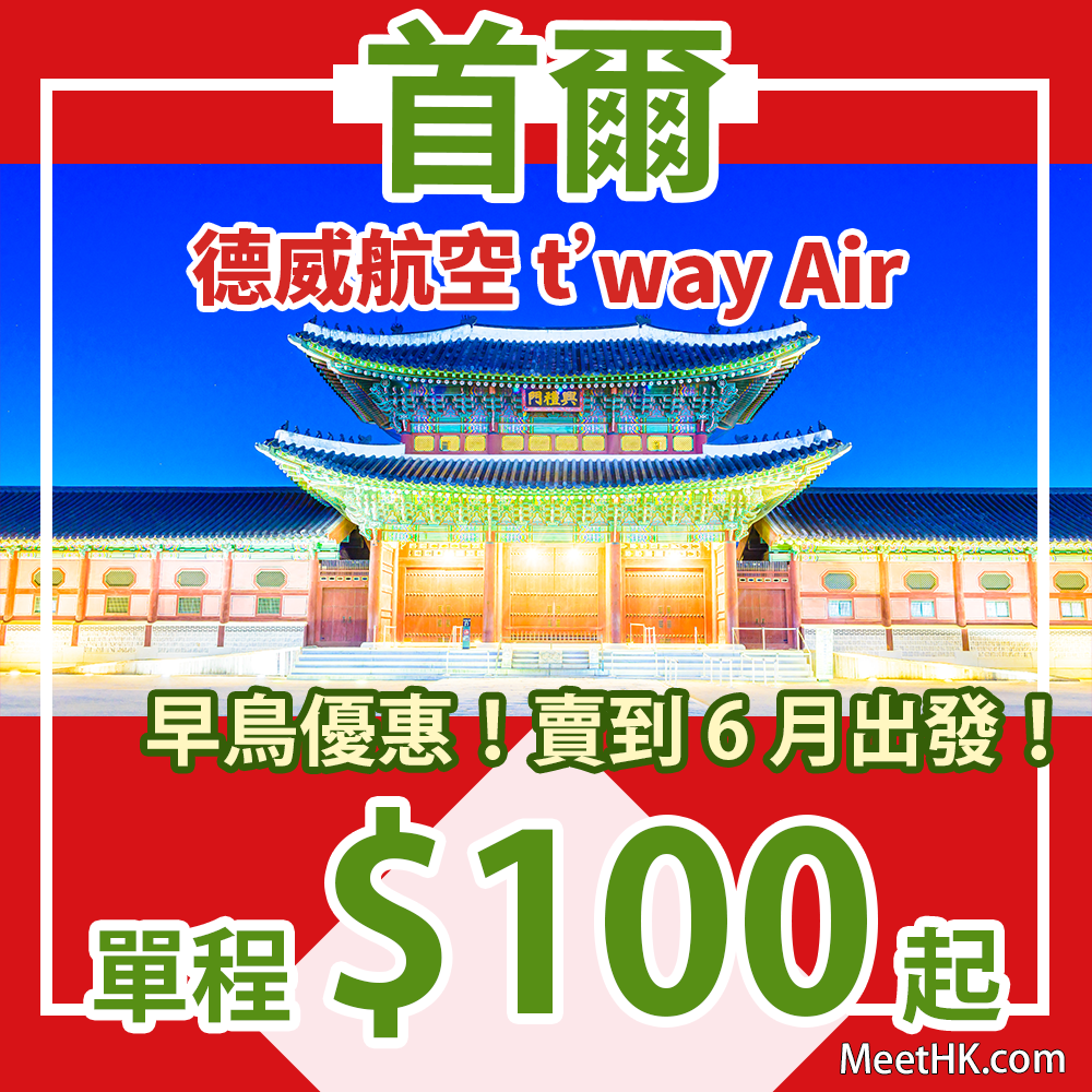 抵!德威航空MEGA早鳥優惠!$100單程飛首爾!凌晨機去晚機返!6月30日前出發!香港飛首爾單程只需$100起 – 德威航空 T’way Airlines (優惠至2月23日)