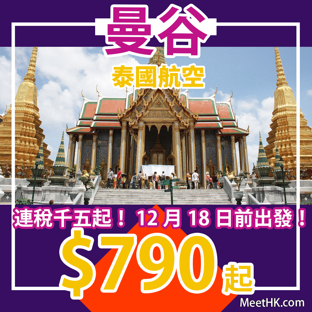 泰航曼谷優惠!連稅千五起!30kg行李!12月18日前出發!香港往返曼谷只需$790起 – 泰國航空 (優惠至3月9日)