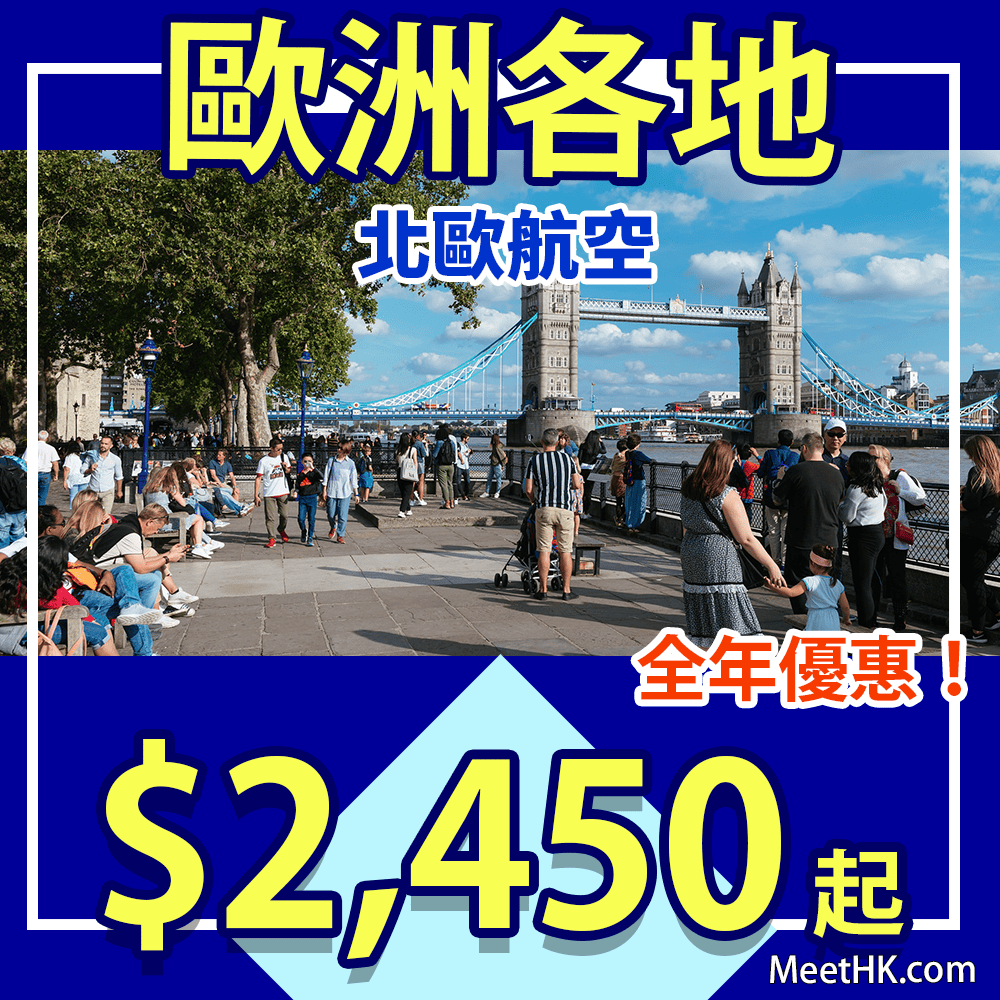 來回連稅都柏林$3,422起、華沙$3,478起、米蘭$3,582起、日內瓦$3,590起、巴黎$3,599起、阿姆斯特丹$3,563起、布魯塞爾$3,624起、蘇黎世$3,658起、維也納$3,755起、倫敦$4,342起