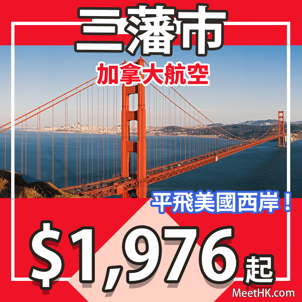 加航平飛三藩市!連稅3千6!11月26日前出發!香港往返三藩市只需$1,976起 – 加拿大航空 (優惠至3月31日)