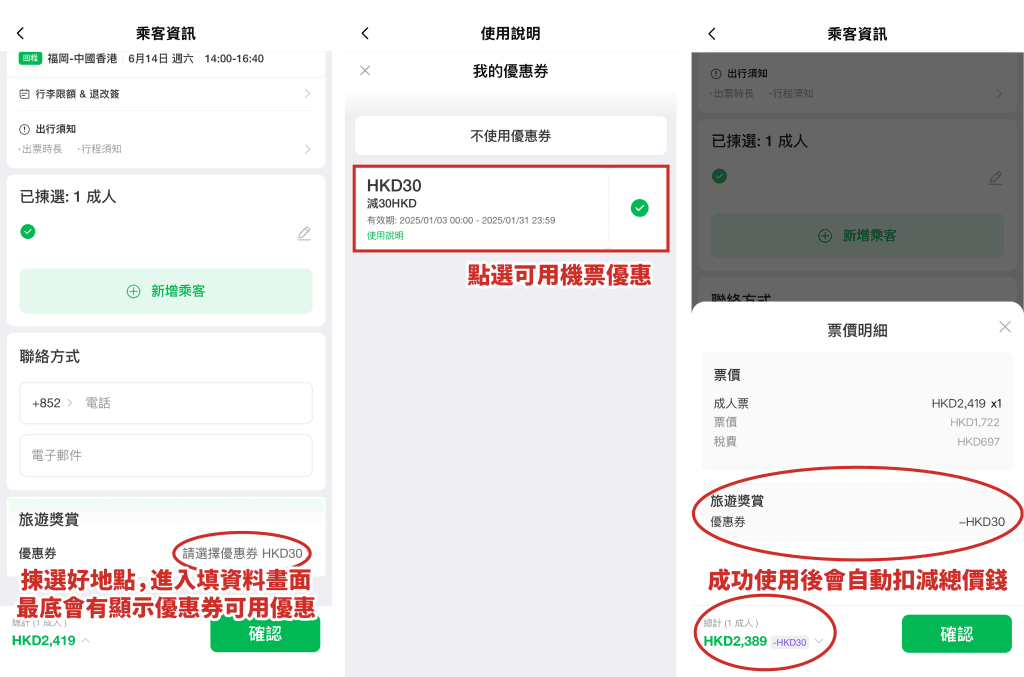 - 於HopeGoo預訂全線機票滿$799即減$30