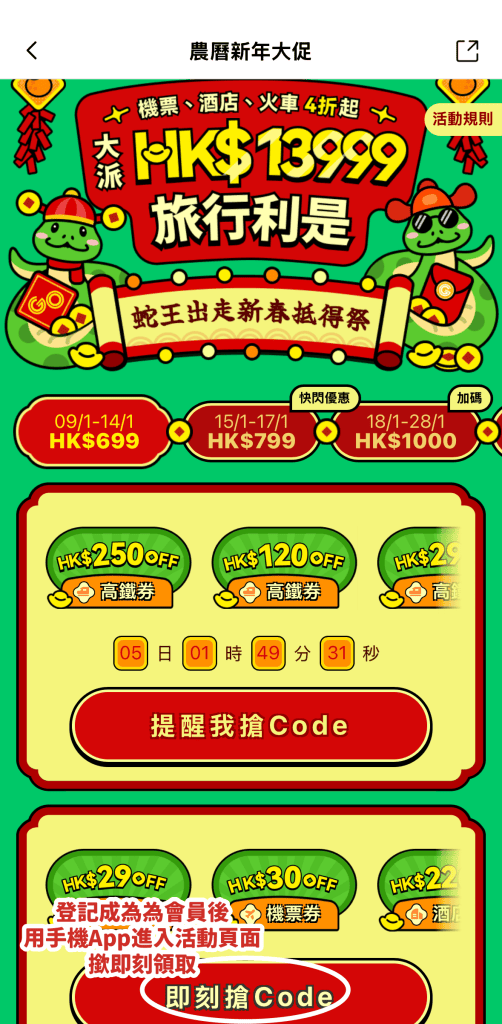想搶超級大利是幫嚟緊旅行慳到最盡?記得mark實以下日子(每日中午12點)搶快閃$799或$1,000優惠券禮包!