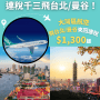每張減$200後,香港飛台北來回連稅只需$1,266起,包23kg寄艙行李!