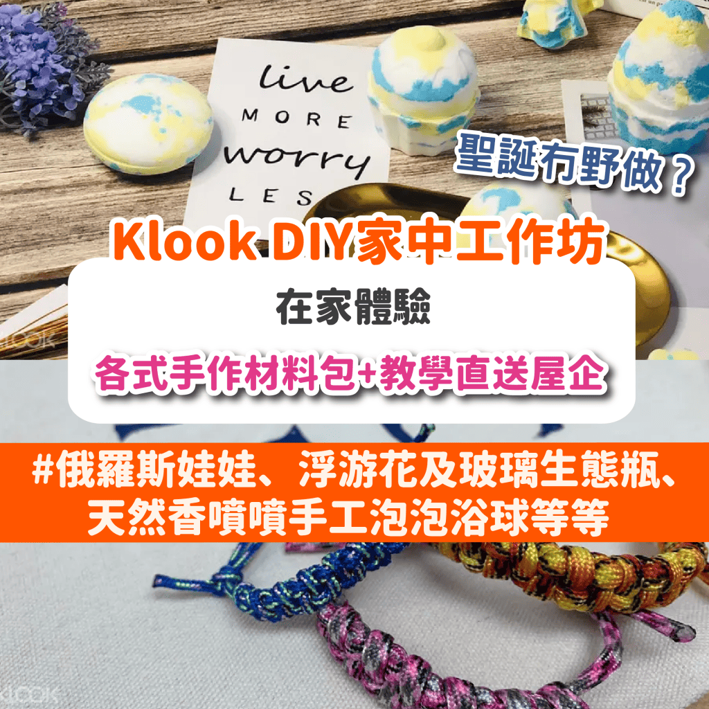 聖誕留喺屋企冇嘢做?日日屈喺屋企好悶?Klook而家有在家體驗DIY家中工作坊優惠!經Klook預訂就可將各式手作材料包+教學送到屋企,可以慢慢玩,消磨時間!手作包括俄羅斯娃娃、浮游花及玻璃生態瓶、天然香噴噴手工泡泡浴球等等,好特別呀!
