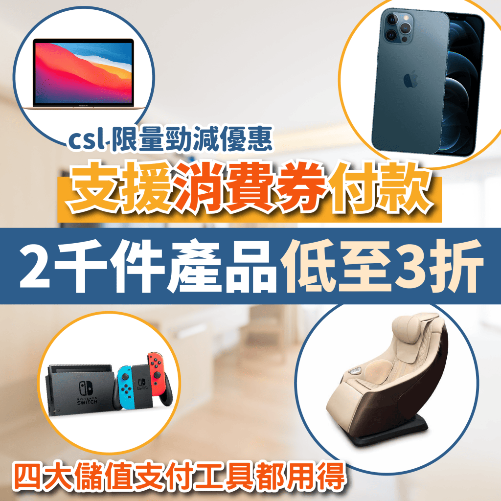 【CSL消費券 限量勁減優惠】去csl換新機+添置家電!四大儲值支付工具都用得!每週限時驚喜價,2千件產品低至3折!仲可以同屋企人夾單付款一齊買!