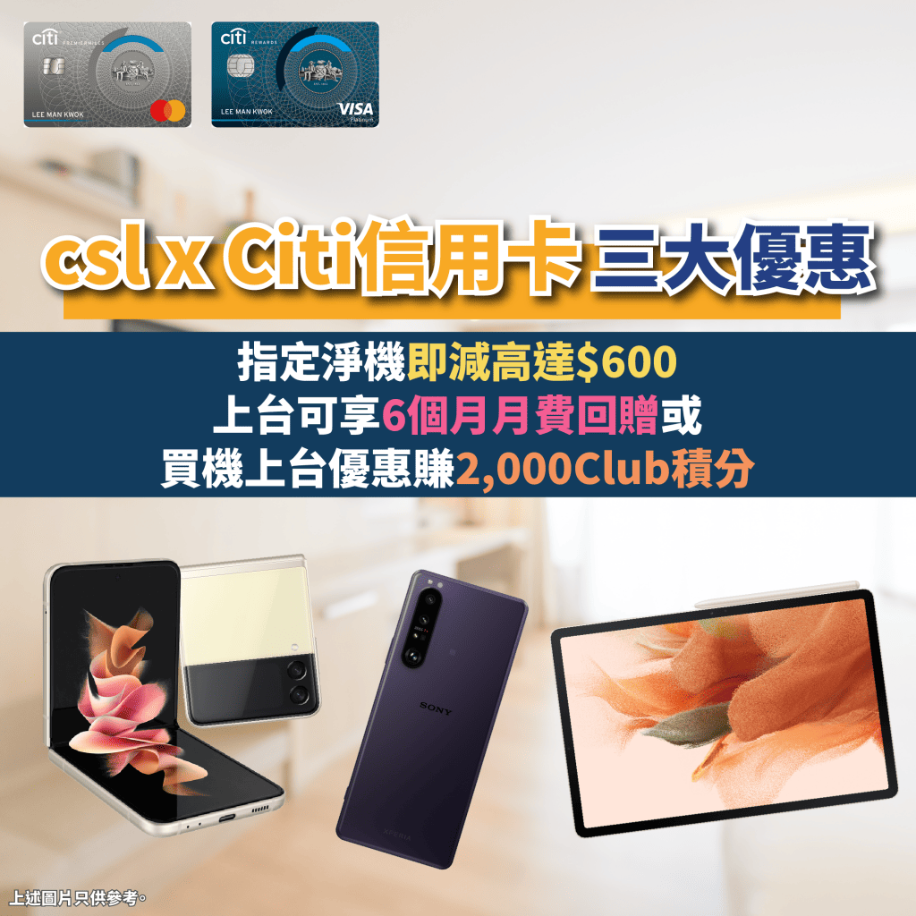 【csl x Citi信用卡 三大優惠】換新電話/電腦!指定淨機即減高達$600!上台可享6個月月費回贈!或買機上台/續約賺高達2,000 Club積分!