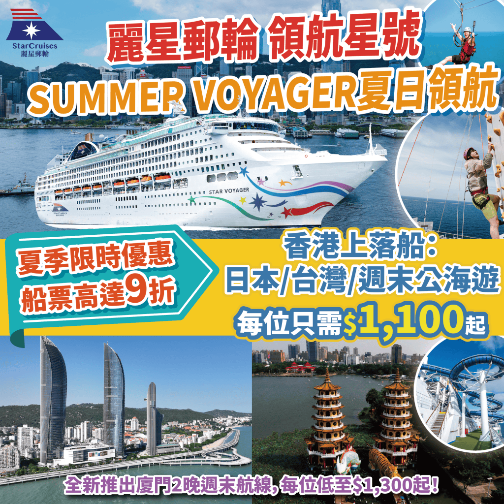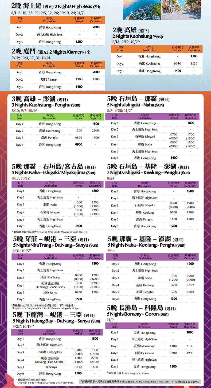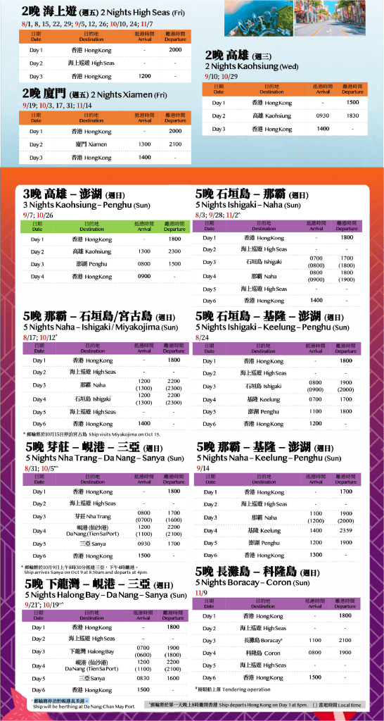 亞洲郵輪船票/套票優惠,每單首兩位每位減HK300 推廣碼:RU885