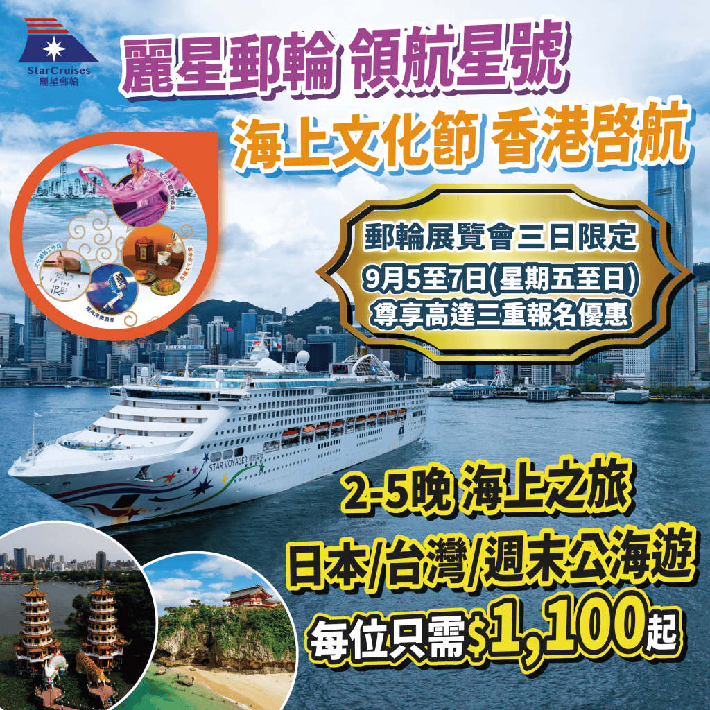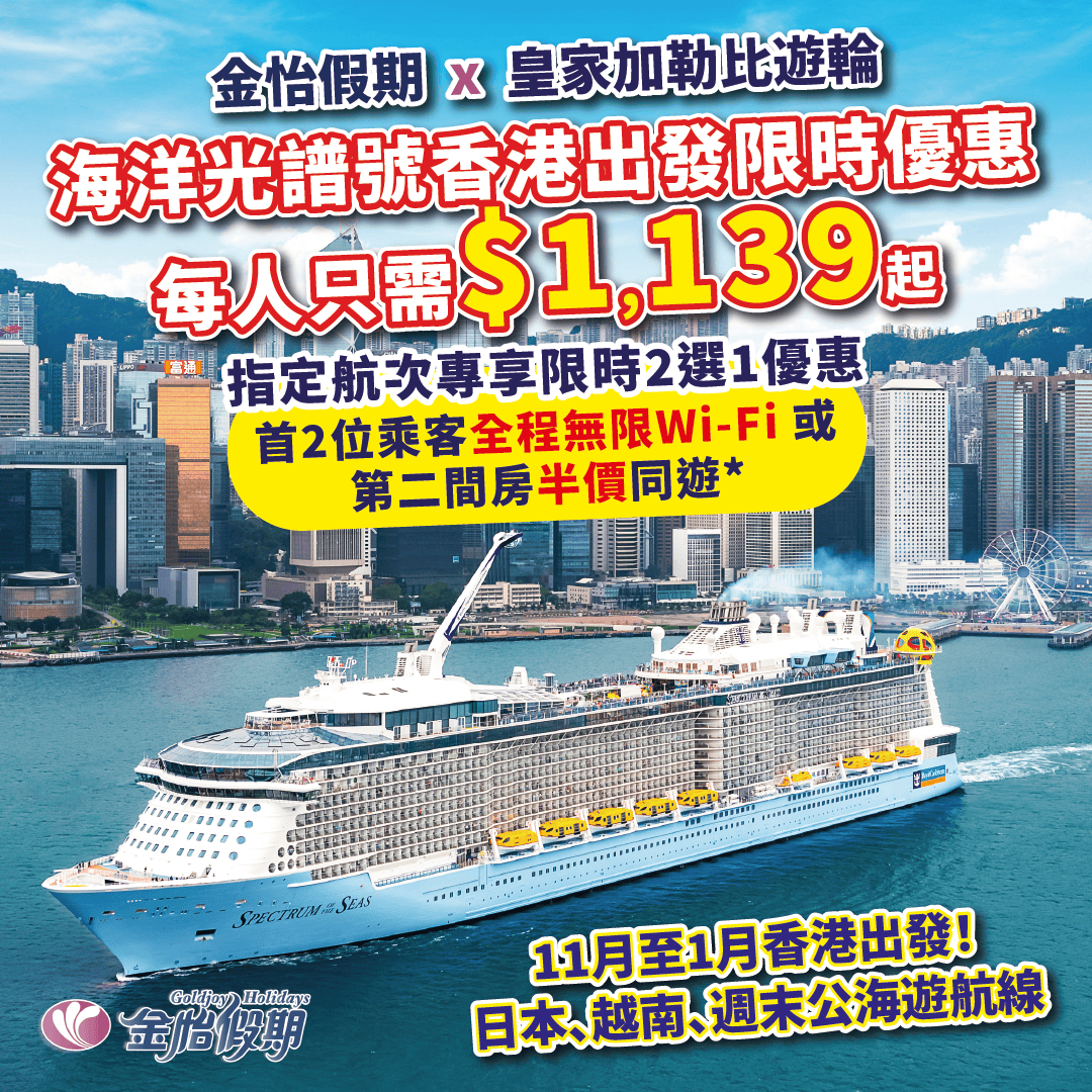 - 亞洲郵輪旅行團,每單首兩位每位減HK$300 推廣碼:RU781