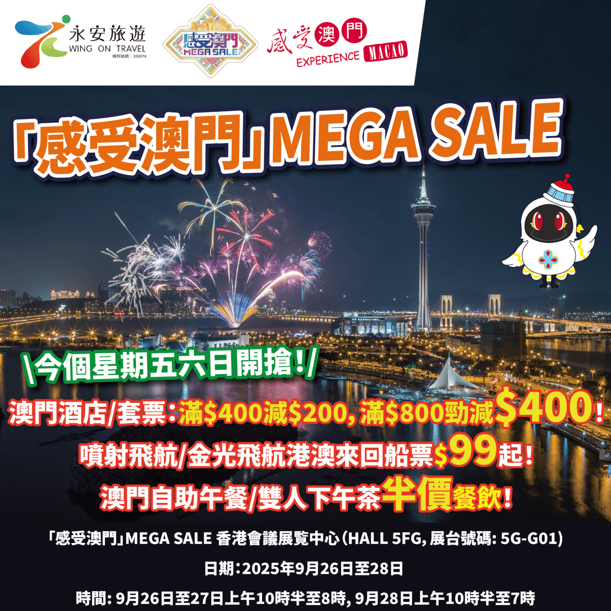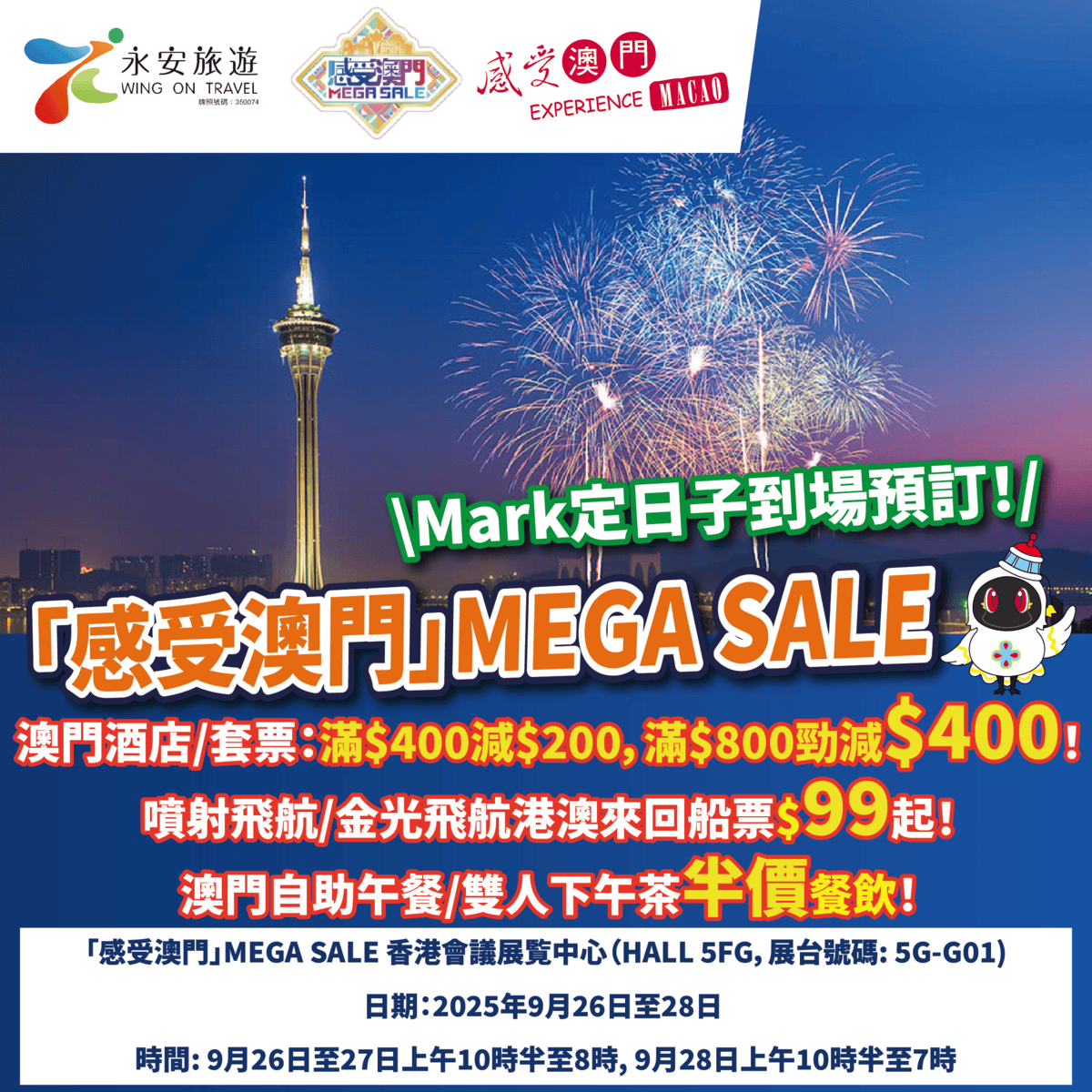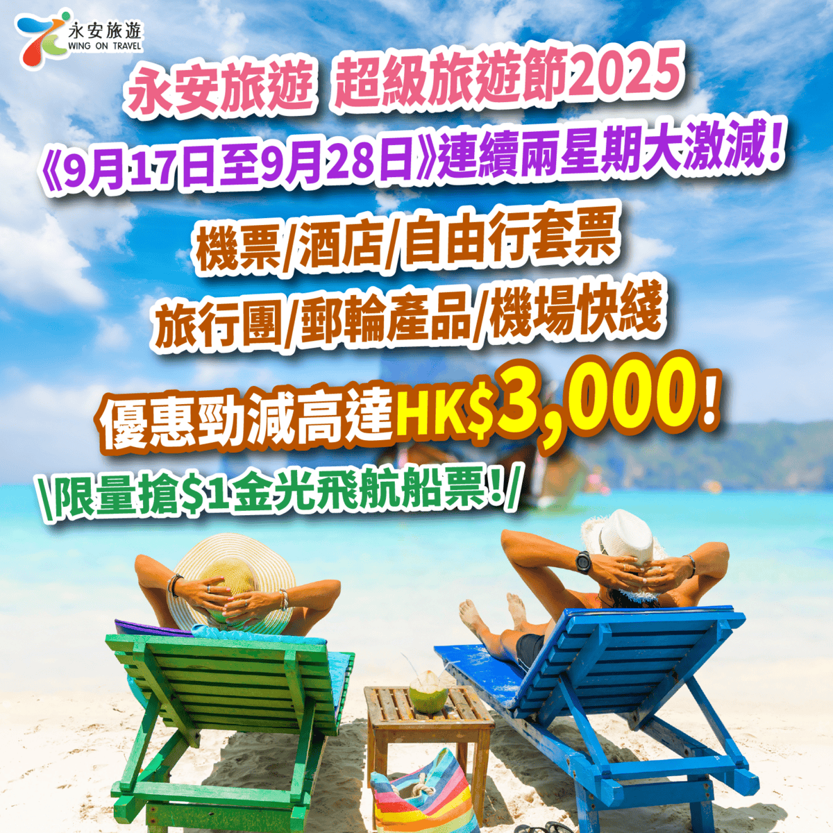 【永安旅遊會員優惠日】機票/酒店/自由行套票/旅行團/郵輪/船票/高鐵/機場快綫通通都有折 (名額有限,額滿即止)