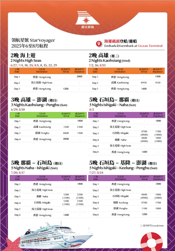 - 優惠只適用於7月31日前預訂領航星號2025年7月至11月14日香港出發2-5晚指定航次。