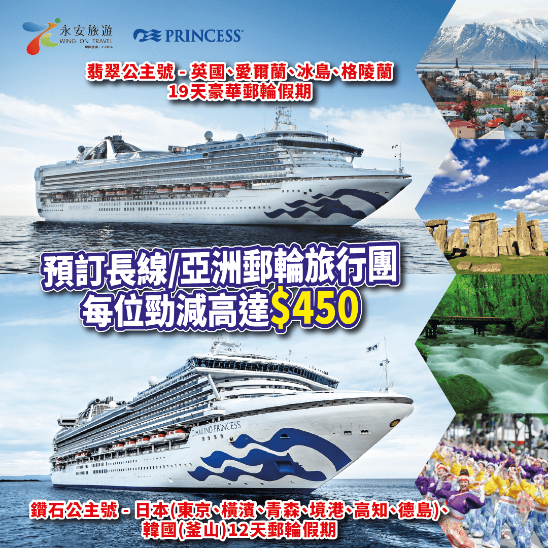 (郵輪熱線 +852 800 938 887 或聯絡各大特約旅行社查詢)