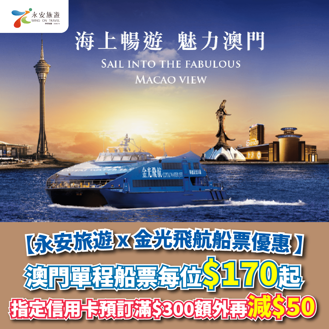 【永安旅遊 x 銀聯】預訂澳門船票滿HK$350即減HK$50!