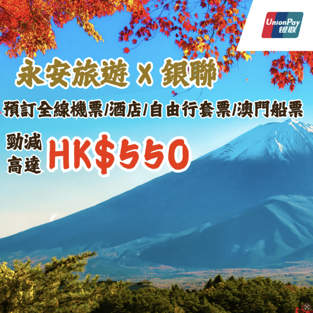 【永安旅遊 x 銀聯】去旅行慳到盡!預訂全線機票、酒店、自由行套票、澳門船票勁減高達HK$550!