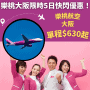 去程優惠:2026年2月25日至3月1日 (單程連稅$991起)