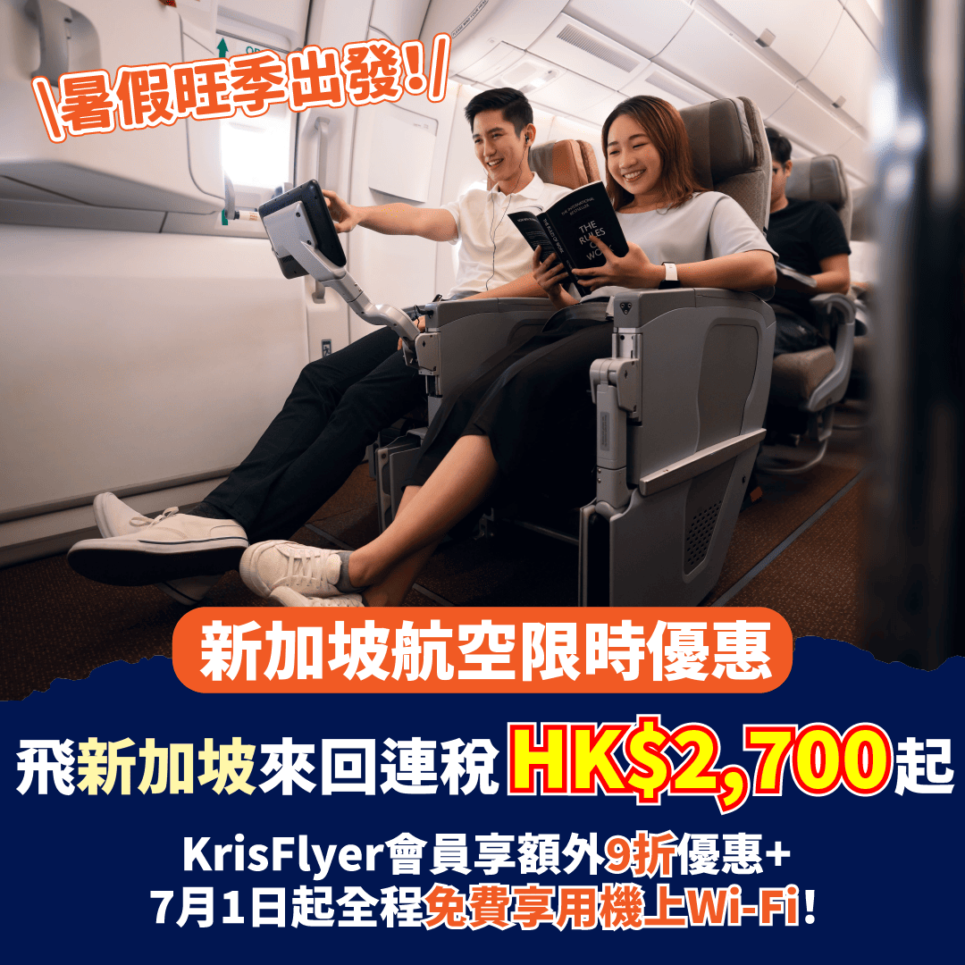 飛新加坡連稅千九起!新加坡航空限時優惠!來回連稅:新加坡HK$1,997起、峇里島HK$2,755起、馬爾代夫HK$5,965起!Visa卡獨家高達HK$800現金回贈!KrisFlyer會員仲可享新幣30元KrisShop購物禮券+全程無限量免費享用機上Wi-Fi!