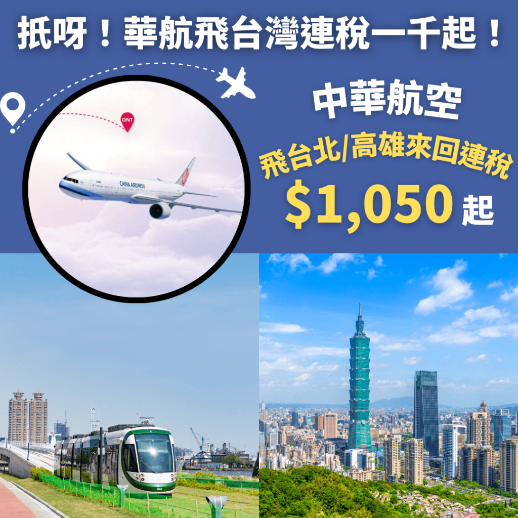 扺呀!華航飛台灣連稅一千起!明年4月30日前出發!香港飛台北、高雄來回連稅只需$1,086起 – 中華航空