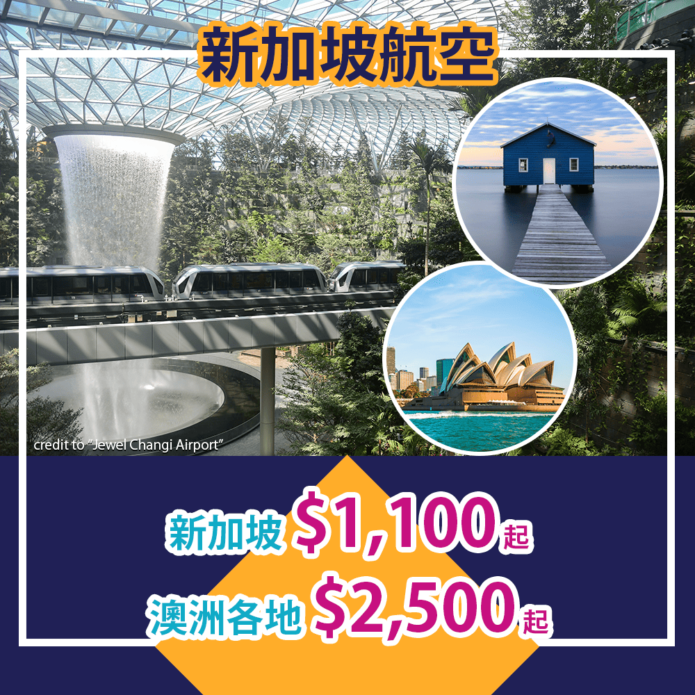 香港往返新加坡只需$1,100起,連稅$1,650起
