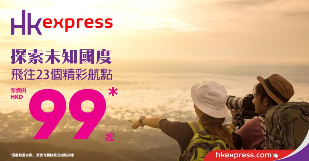 買去程,送回程!明年7月14日前出發!香港飛台灣/東南亞來回$200起,日本各地$598起,首爾/釜山/濟州$598起 – HK Express (優惠至12月28日)