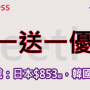 有興趣可以今晚12點上HK Express官網睇睇!(旅客人數要2,4,6,8人先可享買一送一優惠)