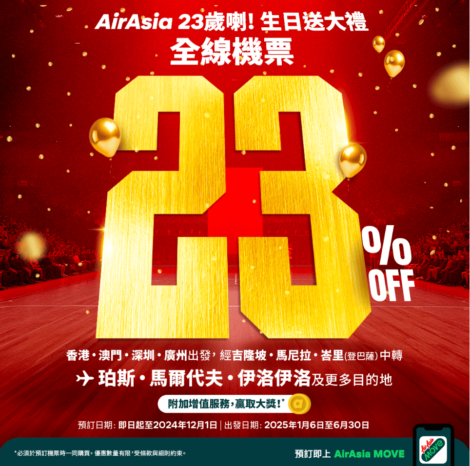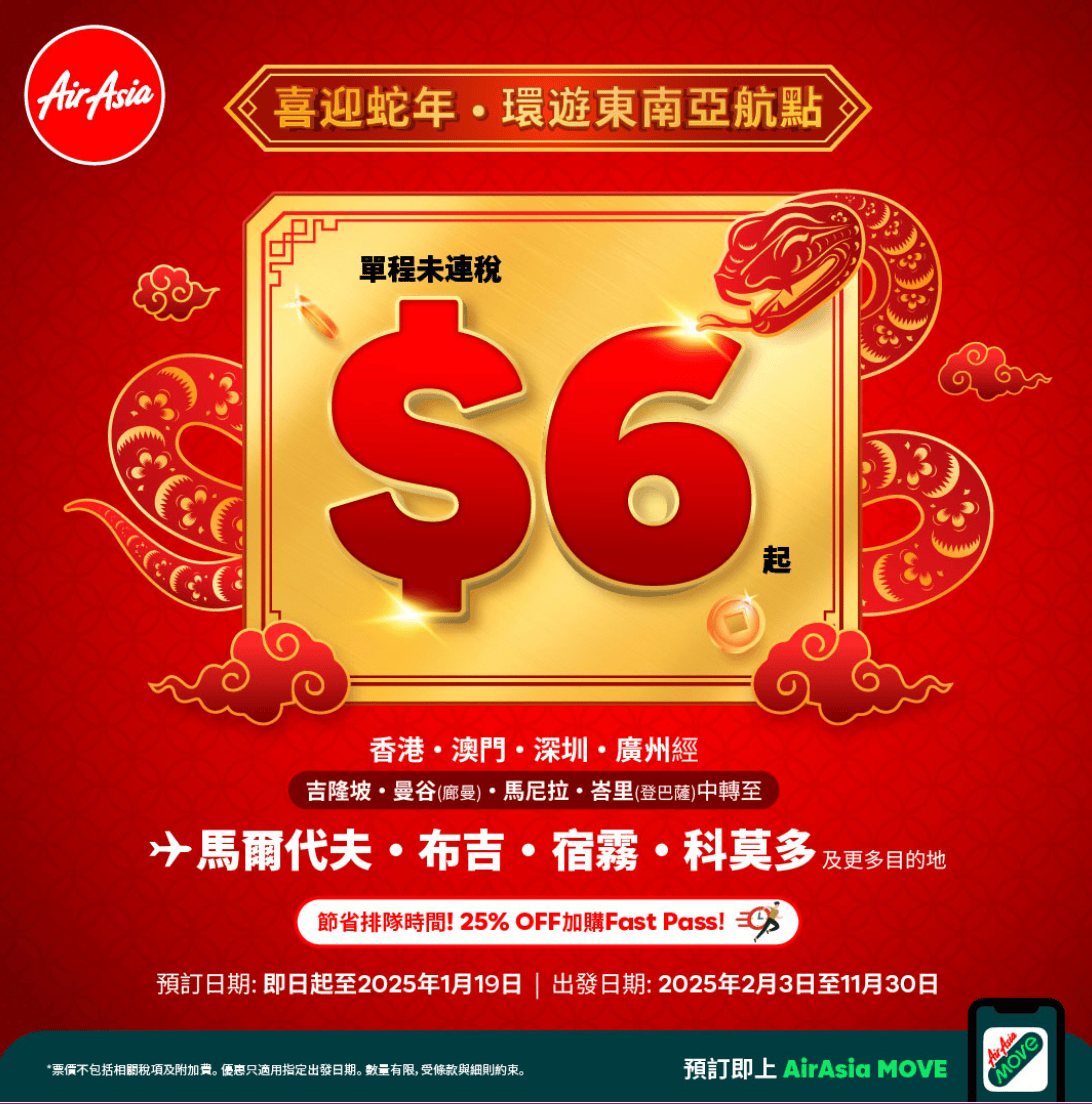 由即日起至2025年3月12日期間,預訂12月20日前由香港出發至馬來西亞、印尼、澳洲、馬爾代夫、斯里蘭卡來回機票,並於2025年12月20日完成旅程,可兌換新幣30元KrisShop電子禮券!禮遇數量有限,先到先得,送完即止。
