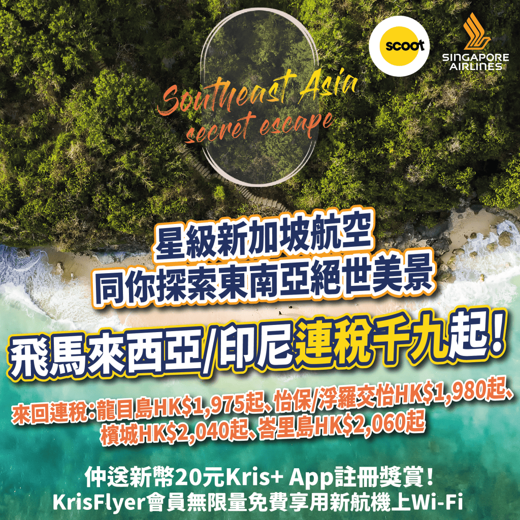 詳情:https://www.singaporeair.com/zh_TW/hk/plan-travel/local-promotions/hkpromotion/