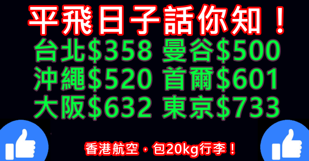 小編將平飛日子一次過話你知,即刻Tag埋各方好友搶飛!