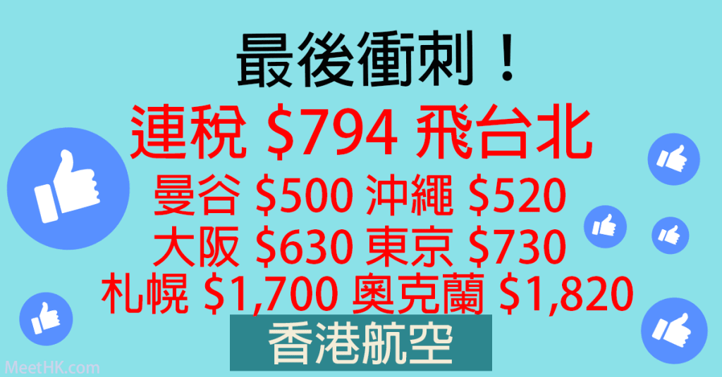 連稅$794飛台北!連稅一千蚊飛曼谷!大阪、東京連稅千一、二!連稅二千一直飛北海道!飛新西蘭連稅二千六!飛遠一遠既溫哥華連稅只係二千八!