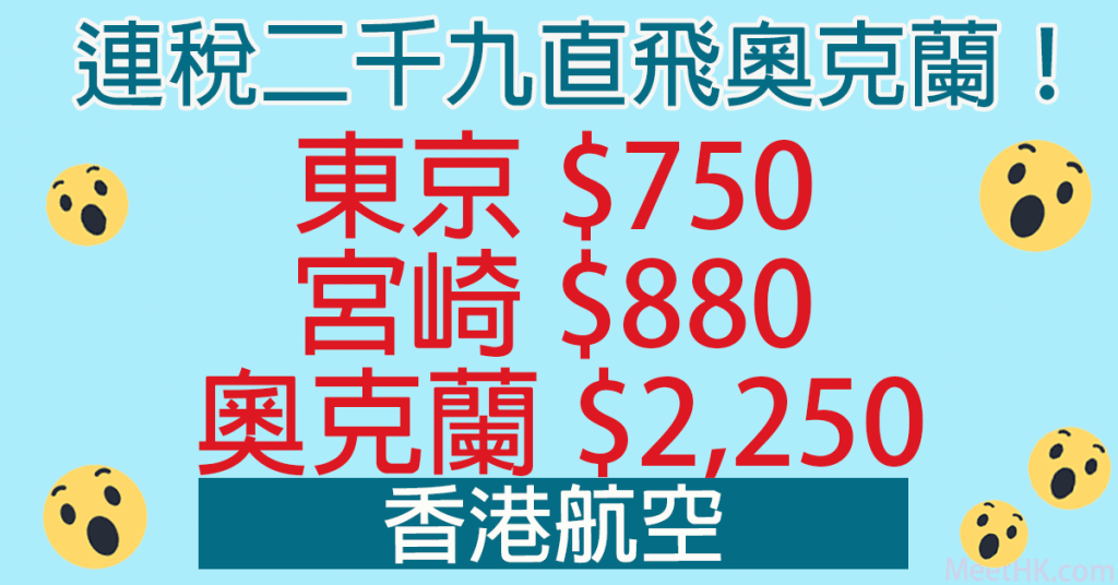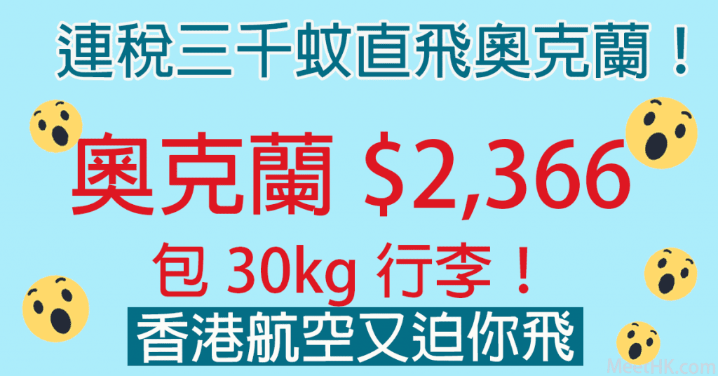 港航隻連稅三千直飛奧克蘭優惠 (詳情:https://www.meethk.com/?p=49710)