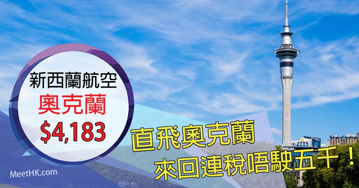 香港直航往返奧克蘭只需$5,897,連稅$6,390