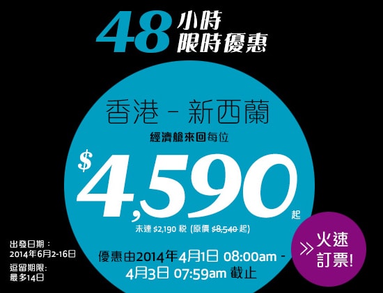 香港航空會係11月10日起開新西蘭奧克蘭線,今日正式開賣啦