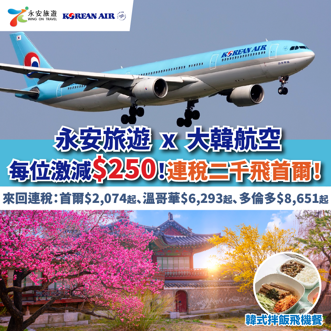 【永安旅遊 x 大韓航空 遊韓優惠】預訂大韓航空來回機票,每位激減$250!