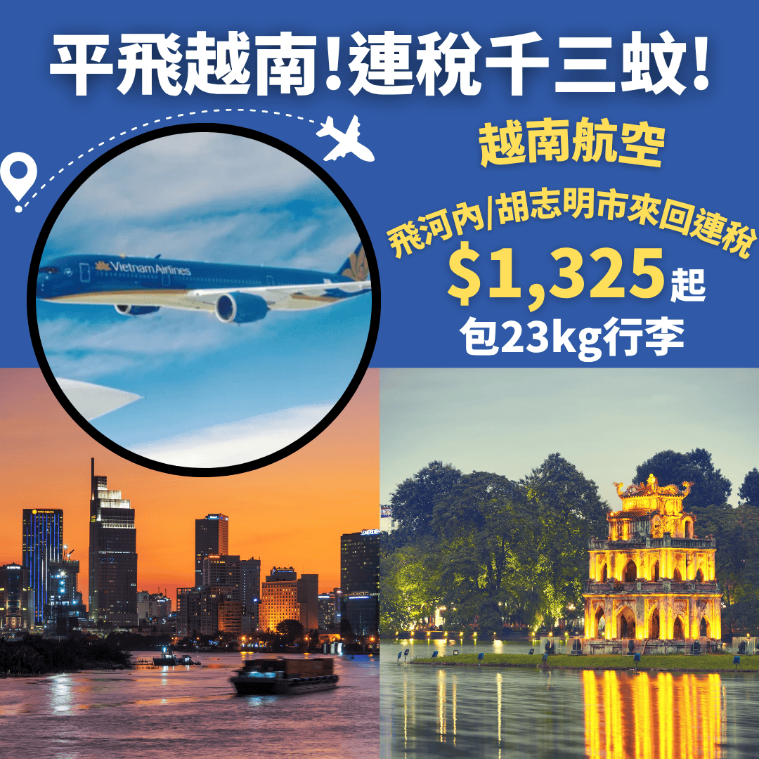 越南航空平飛河內/胡志明市!連稅千三!暑假聖誕都有平!