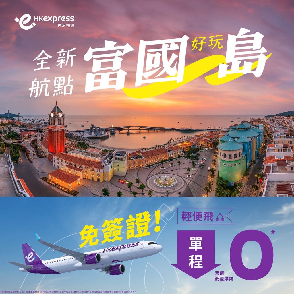 嘩!$0飛富國島!富國島新航線!12月6日起開航!明年3月30日前出發!香港飛富國島單程只需$0起 – HK Express (優惠至8月21日)