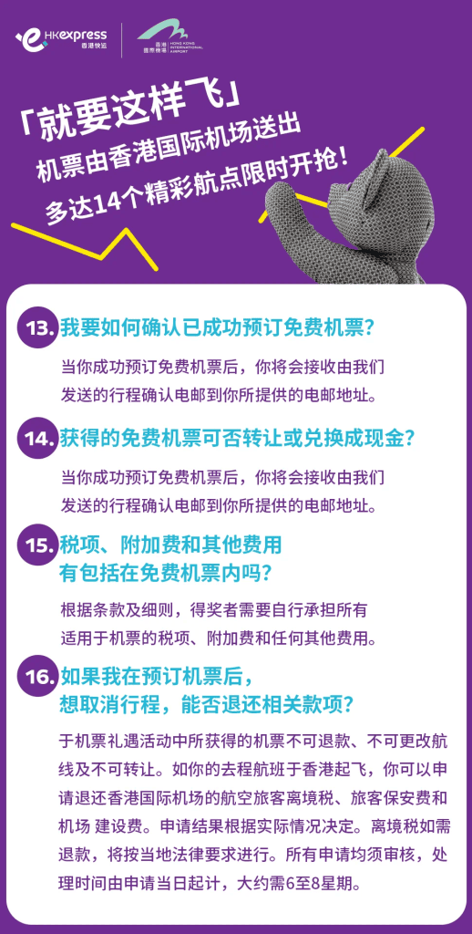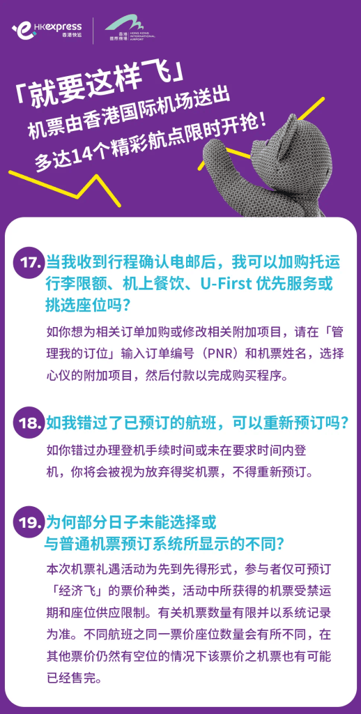 答︰請參閱香港快運的《運輸條款》。