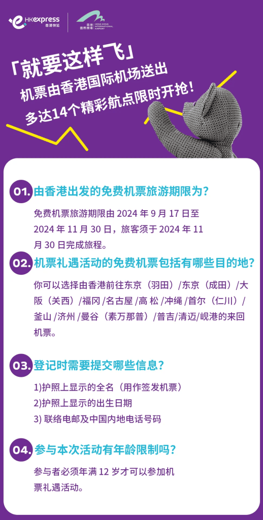 有興趣可以9月10日10am上HK Express活動網站睇睇:https://meethk.net/3ZjEWK6